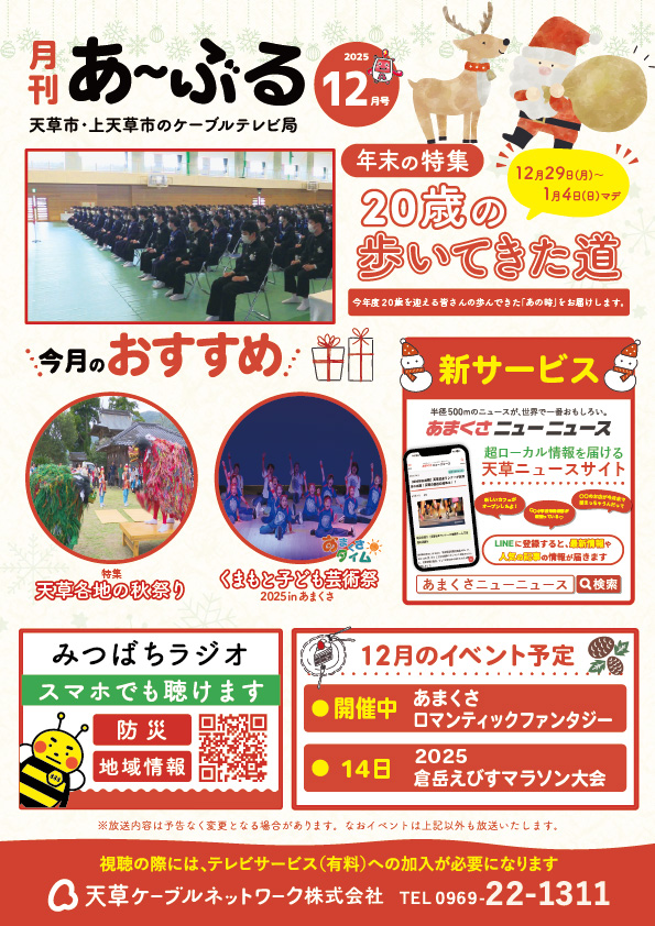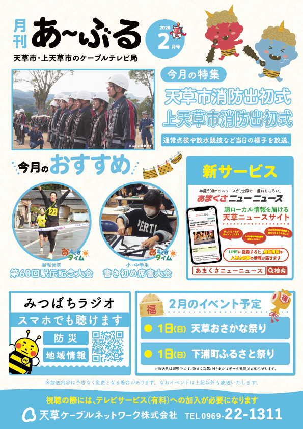 天草ケーブルネットワークのコミュニティチャンネルです。地域密着の情報を皆様にお届けします。