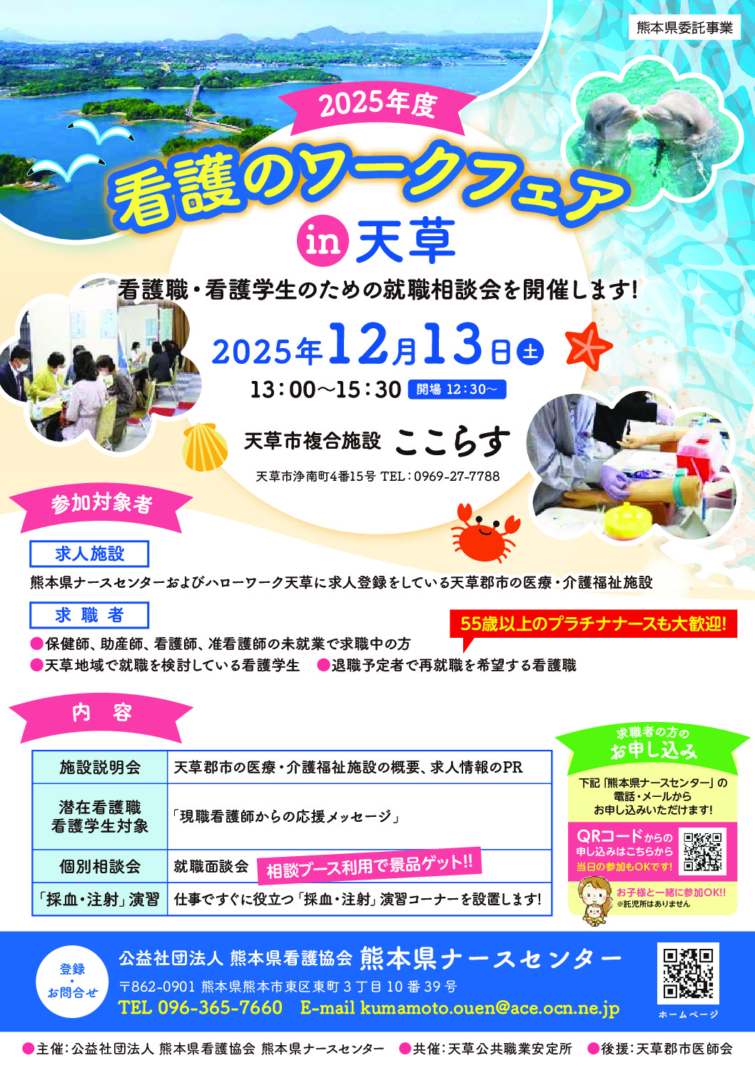 熊本県ナースセンターとハローワーク天草に求人登録をされている天草郡市の医療・介護福祉施設が集まります🏥🤝