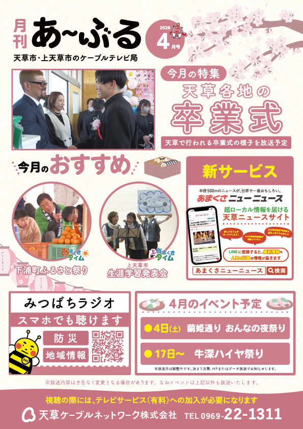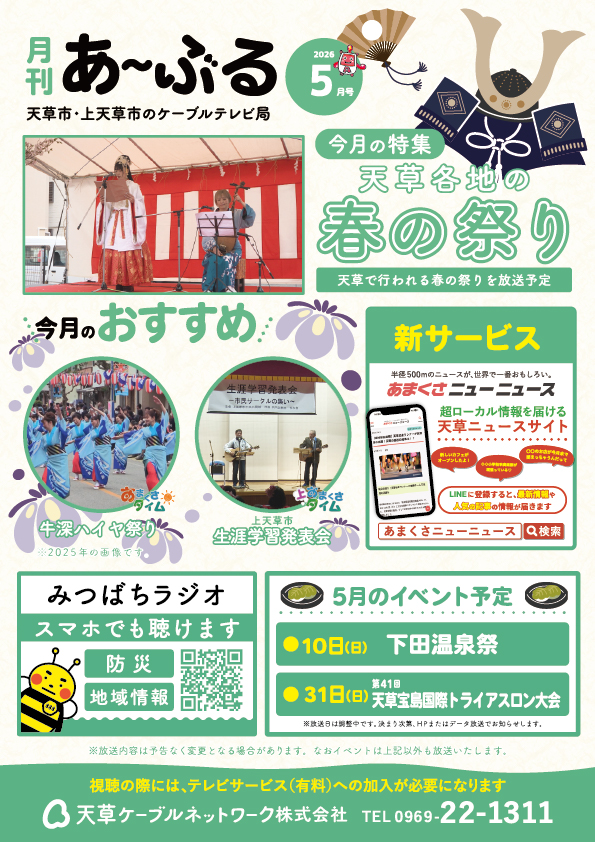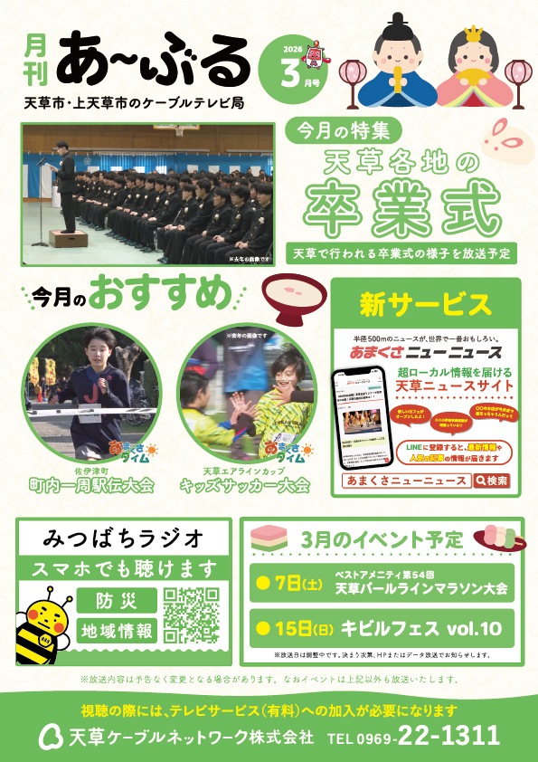 天草ケーブルネットワークのコミュニティチャンネルです。地域密着の情報を皆様にお届けします。